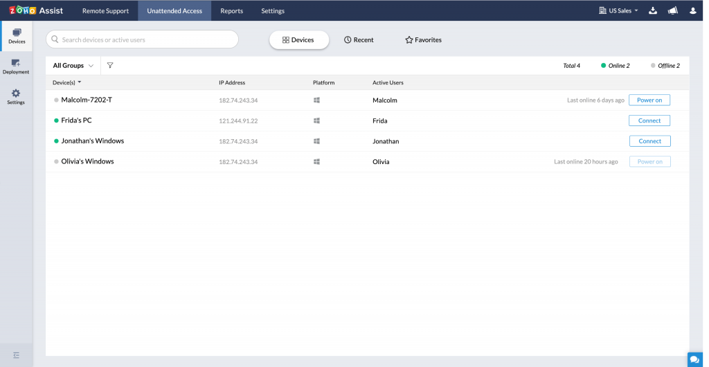 Configure o acesso remoto autônomo para computadores, dentro e fora da LAN. Opções de implantação em massa disponíveis. O Assist suporta Windows e Mac.