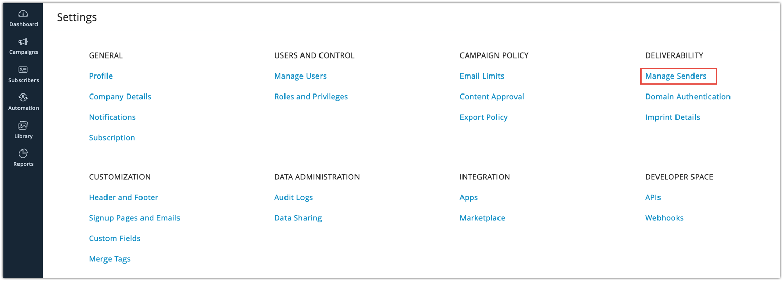 - Adicione um domínio de remetente à sua conta do Zoho Campaigns.