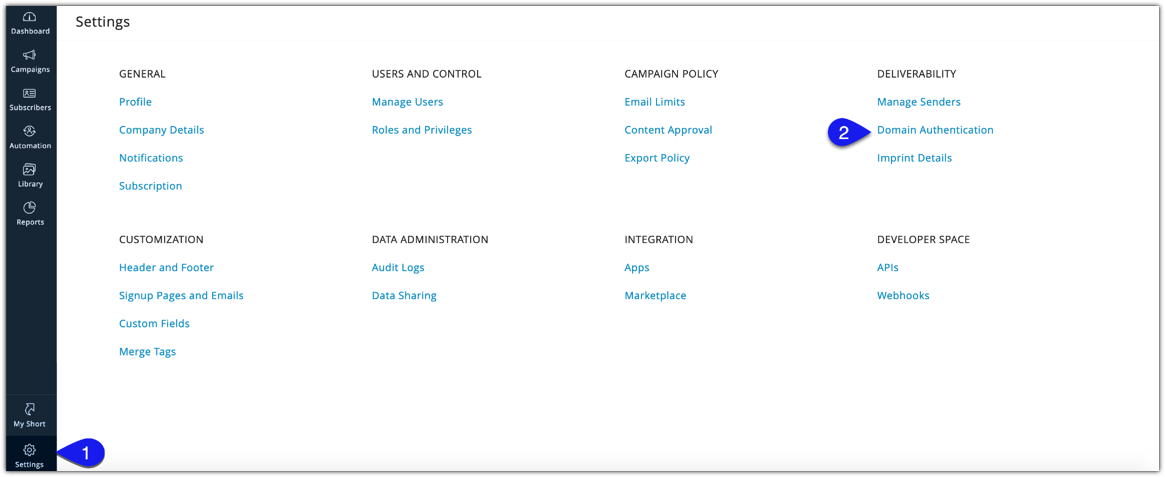 A Autenticação de Domínio é um mecanismo que verifica o email a partir do ponto de origem, validando o remetente do email. Ele verifica os e-mails para descartar qualquer possibilidade de spam ou falsificação, protegendo assim a boa reputação do remetente. Autenticar o seu domínio permite a transferência suave de e-mails através de filtros de spam e na caixa de entrada do destinatário.
