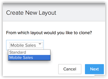 - No Criar novo layout pop-up, escolha qual layout para clonar este novo layout a partir.