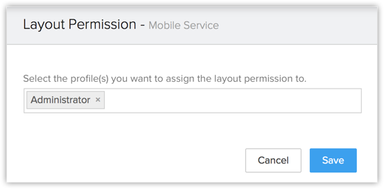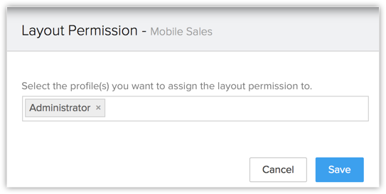 - Ao gravar o layout, você será solicitado para definir as permissões para o layout. No Permissão layout pop-up, digite os perfis de usuários que terão acesso ao layout.