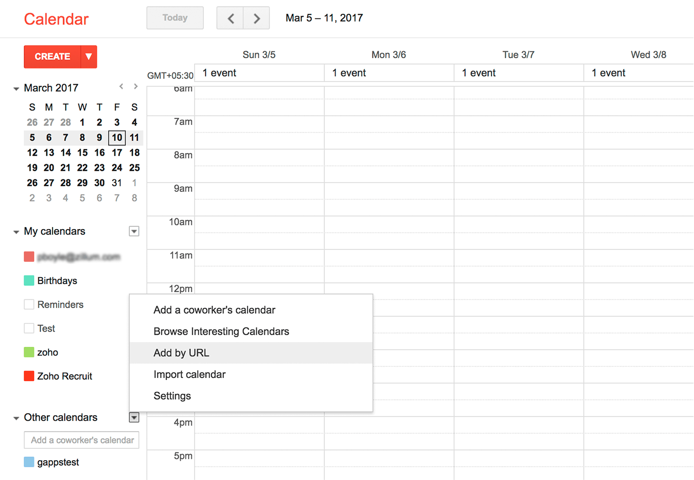 - Em URL, cole o link do gcalendar copiado do Zoho Projects e clique em Adicionar calendário .