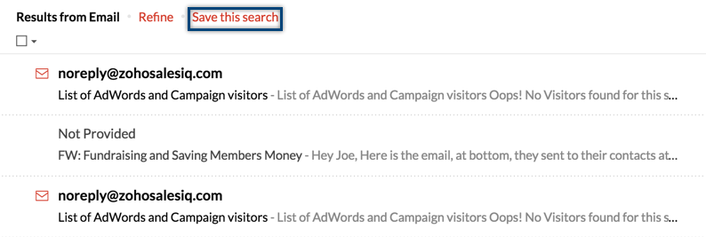 - Depois de definir suas condições de pesquisa, os e-mails relevantes são listados em sua tela