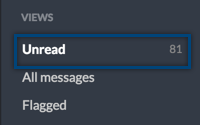 O número de emails não lidos na pasta aberta é exibido ao lado do nome da pasta. Clique na contagem para abrir a visualização não lida dessa pasta.