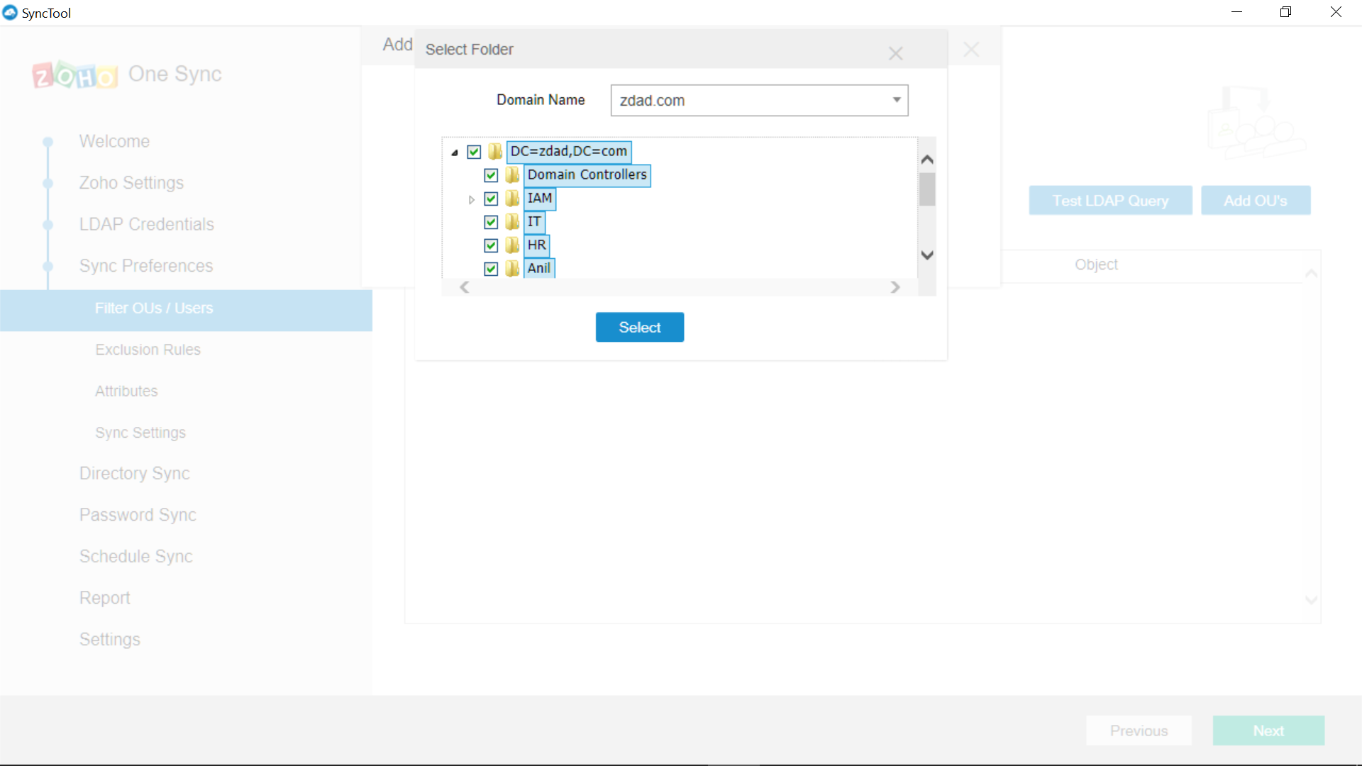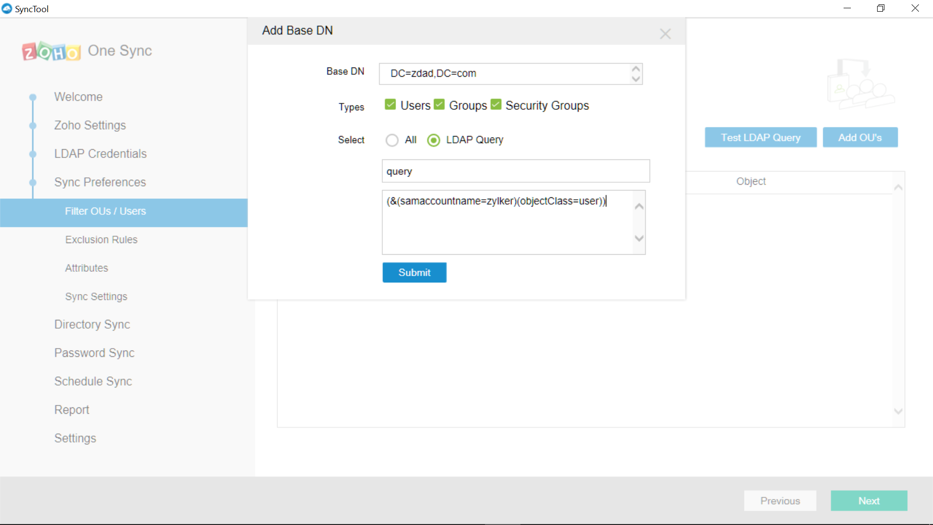 - Aqui, você pode selecionar Unidades Organizacionais ou configurar consultas LDAP avançadas
