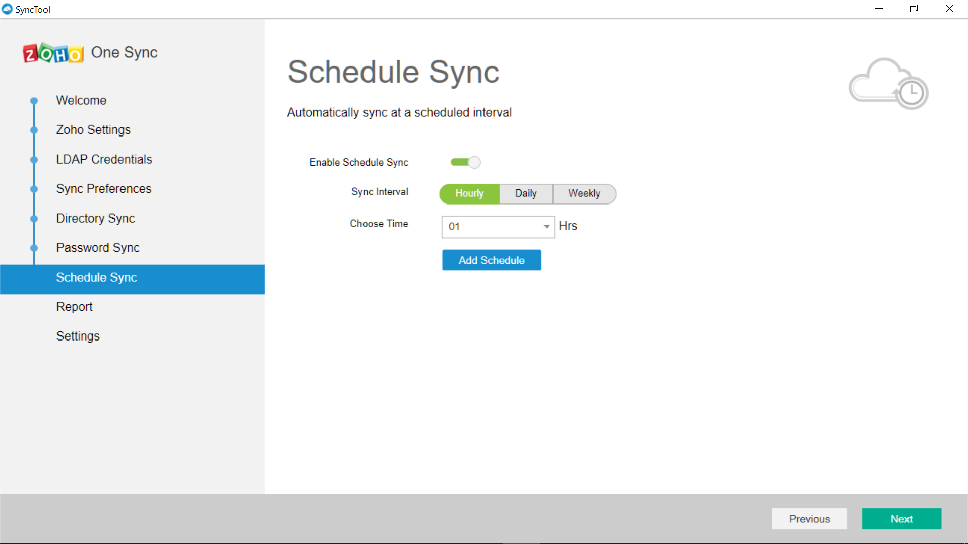 Aqui, você pode definir o cronograma para sincronização. A sincronização ocorrerá automaticamente no horário agendado.