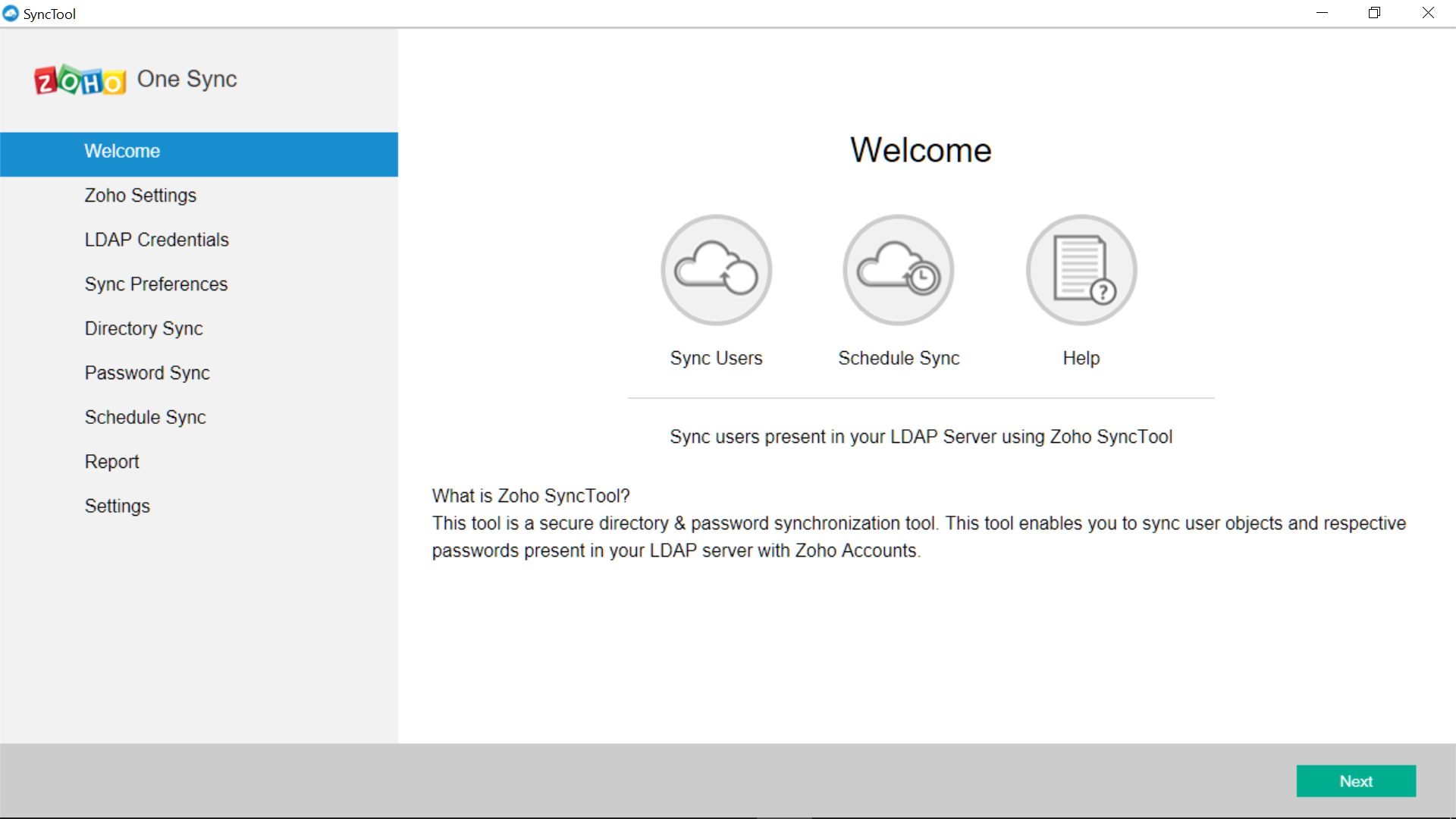 O Zoho Directory Sync é uma ferramenta simples e segura de sincronização de diretórios e senhas, que ajuda a sincronizar objetos de usuários e suas senhas no Active Directory (AD) com contas Zoho. O Zoho Directory Sync sincroniza automaticamente as contas de usuários no Zoho para corresponder aos dados do usuário no AD. Como a sincronização sempre acontece do AD ao Zoho, os dados no AD nunca são comprometidos.