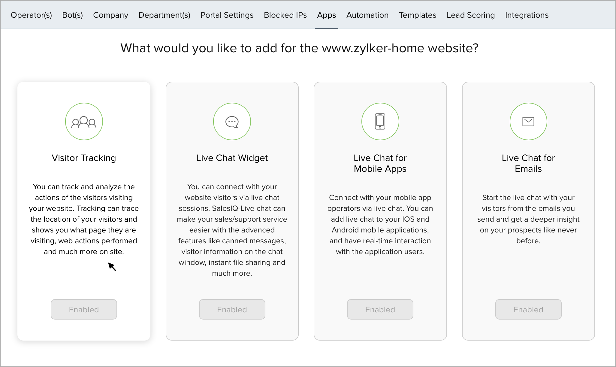 - Se você quiser desativar o rastreamento e ativar apenas o widget de bate-papo ao vivo em seu site, clique em Desativar no rastreamento de visitante .