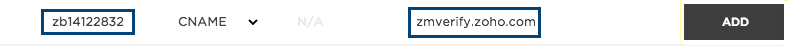 - No campo Data , insira zmverify.zoho.com .