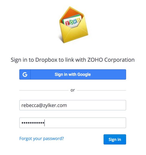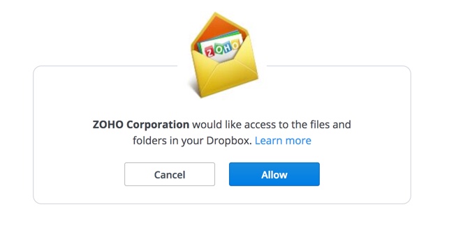 - As etapas de autenticação acima são seguidas para as opções de filtro Dropbox, One Drive, Google Drive e Box. A opção de adicionar anexos ao Zoho Docs não requer o processo de autenticação, pois você já está conectado à sua conta Zoho.