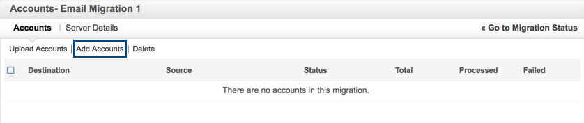 - Você precisa adicionar os detalhes da conta a serem migrados como a próxima etapa.