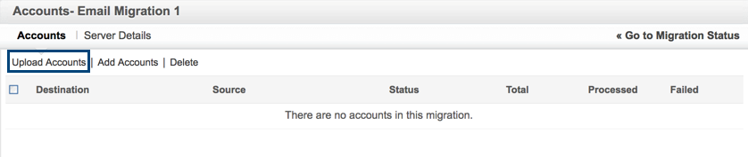 - Clique no upload Contas link na página Contas de Migração.