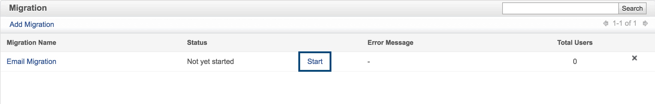 - Clique em Iniciar link, através da migração você acabou de adicionar para iniciar a migração.